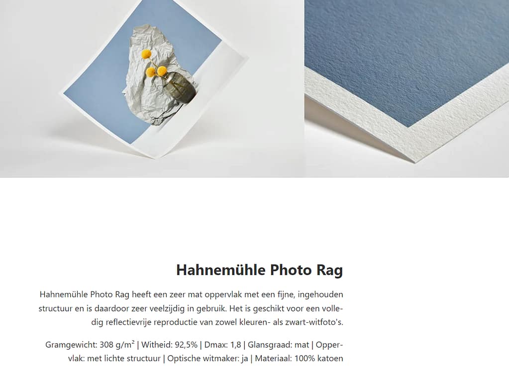 Hieronder vind je een heldere uitleg van het verschil tussen Hahnemühle Photo Rag en FineArt Pearl.