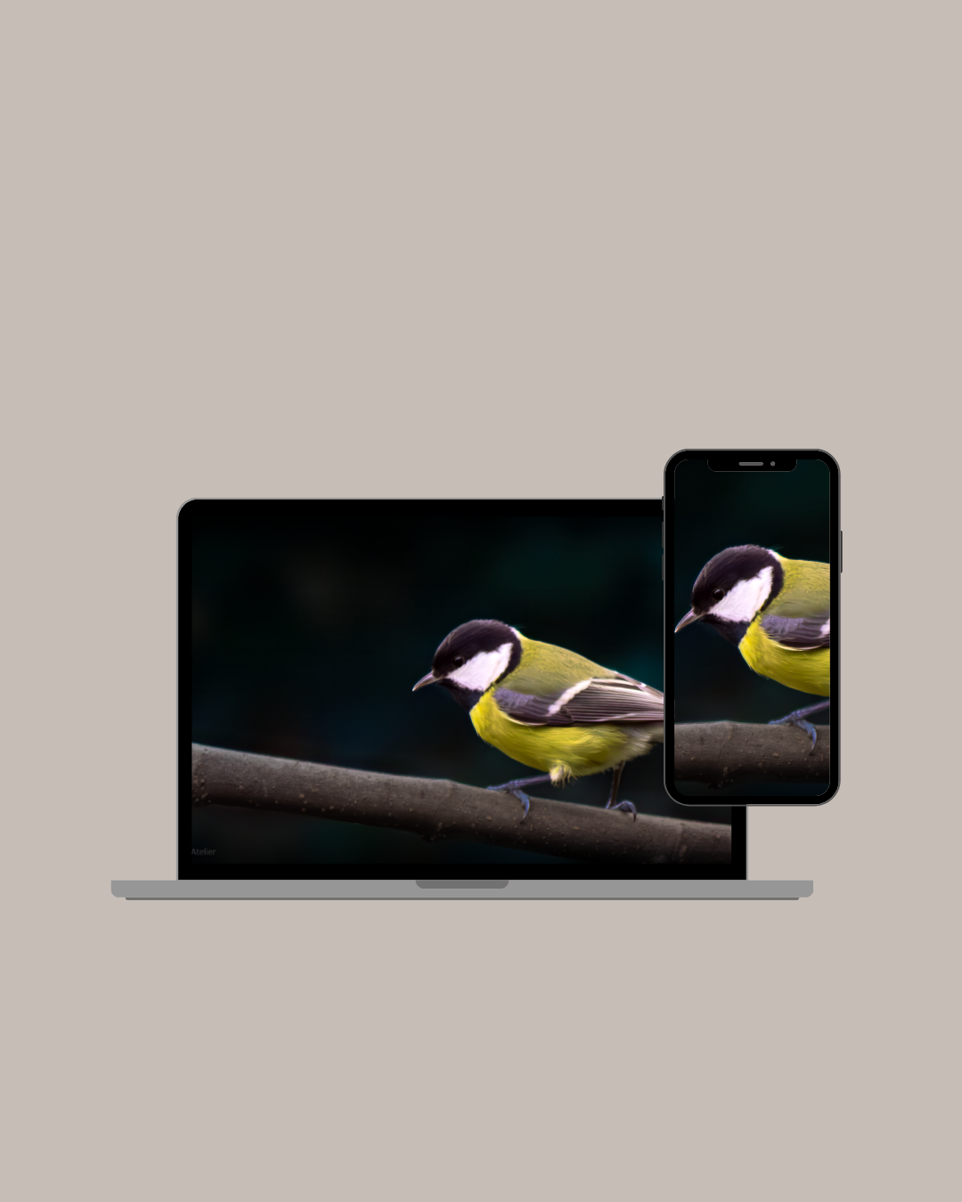 Het beeld laat niet alleen de schoonheid en levendigheid van dit kleine vogeltje zien, maar ook het plezier van het beleven van een stukje natuur gewoon bij huis. Perfect om kleur, leven en een gevoel van rust en natuur in elk interieur te brengen.