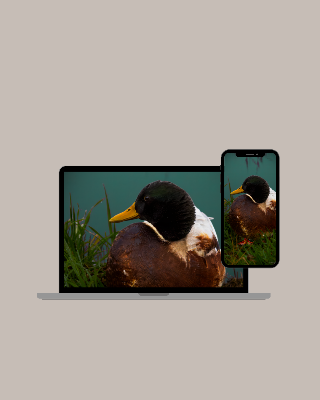 Net na een rustig zwemmetje nestelde deze eend zich op de oever bij Zaanse Schans om te poetsen en te rusten naast zijn partner. Ik kon ongelooflijk dichtbij komen zonder hen te storen, en keek toe hoe hun waakzaamheid afnam en ze zelfs in slaap vielen. De diepe groentinten en zachte middaglicht brengen de zachte ritme van hun dagelijkse leven tot leven, ideaal voor elke ruimte die een vleugje kleur, sereniteit en natuur nodig heeft.